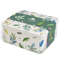 Lattina decorata e smaltata, con coperchio.